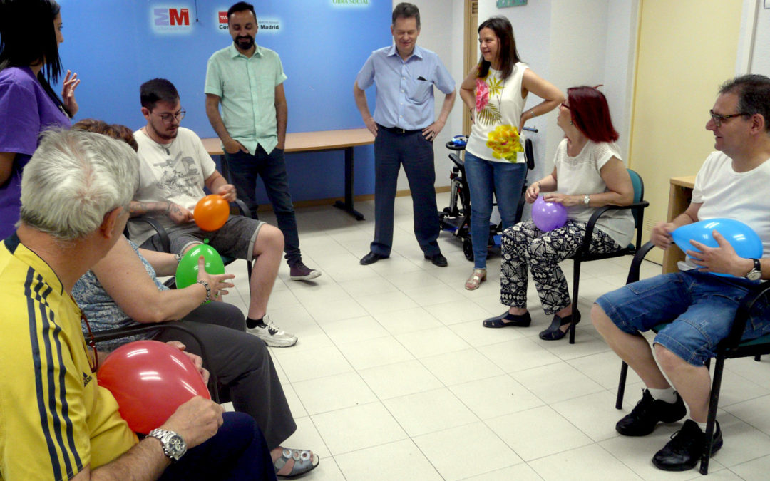 El pasado mes de julio de 2017 la tercera edición de «Móstoles con Ganas«, una iniciativa del grupo municipal «Ganar Móstoles», otorgaba 5.300€ a nuestra Asociación para que llevásemos a cabo un proyecto de intervención psicomotriz para los afectados de Esclerosis Múltiple en AMDEM. Esta mañana, Susana García Millán (Régimen Interior del Ayto. de Móstoles) y Alfonso Vinuesa (Concejal adjunto de Cultura) han visitado nuestro taller de Psicomotricidad para participar de primera mano en su desarrollo.