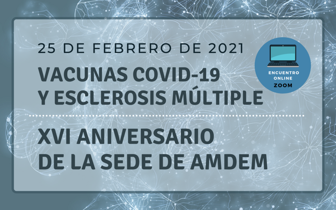 Coincidiendo con el XVI ANIVERSARIO del Centro de Rehabilitación Integral, el próximo día 25 del presente mes, la Asociación Mostoleña de Esclerosis Múltiple -AMDEM celebrará una JORNADA ONLINE DE INFORMACIÓN SOBRE LAS VACUNAS FRENTE AL COVID-19 EN LA ESCLEROSIS MÚLTIPLE a través de ZOOM con inscripción previa para todas las personas que estén interesadas en participar.