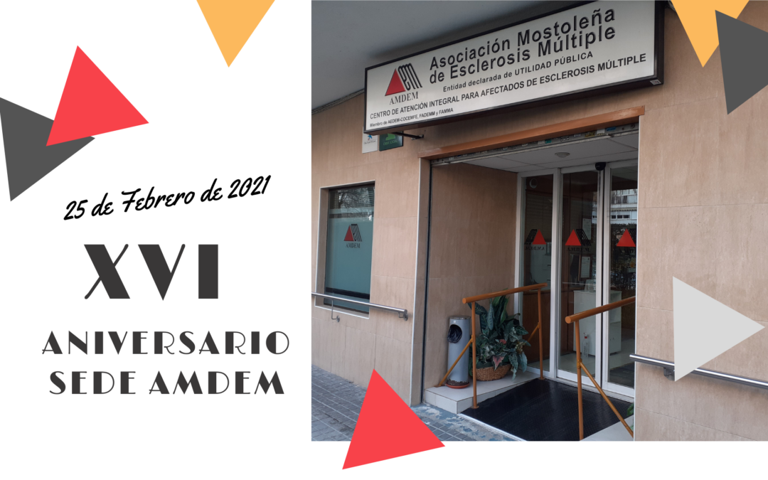 La Asociación Mostoleña de Esclerosis Múltiple – AMDEM, fue fundada en octubre de 1996, llevamos 25 años a tu lado, pero no fue hasta un 25 de febrero del 2005 cuando inaugurábamos, orgullosos, el actual Centro de Rehabilitación Integral que se convertía en sede de nuestra Asociación. Hoy 16 años después de esta apertura del actual centro, celebramos su XVI ANIVERSARIO, poniendo en valor su recorrido, acordándonos y dando las gracias a todos los que nos han ayudado en este caminar.